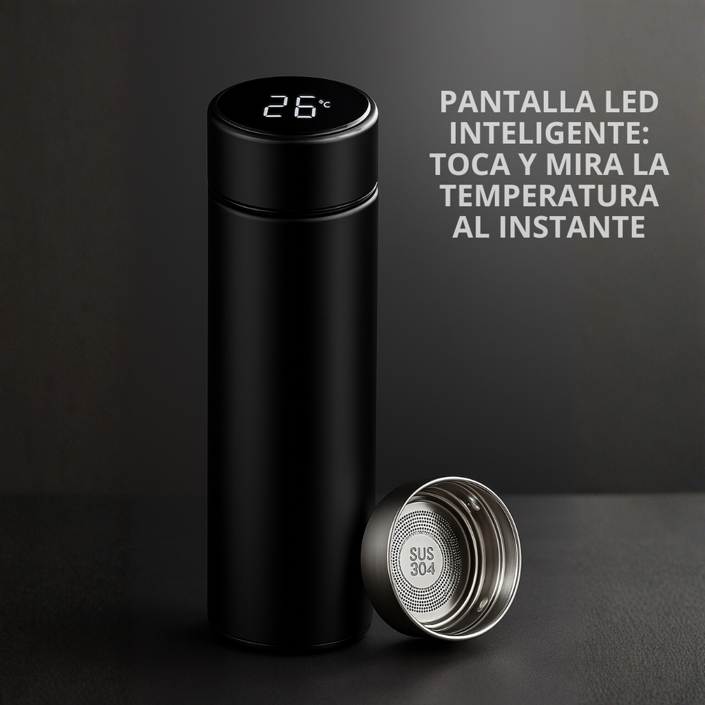Conoce la temperatura exacta de tu café o agua con solo tocar su tapa inteligente con pantalla LED. Fabricado para durar, mantiene tus bebidas frías o calientes por horas.